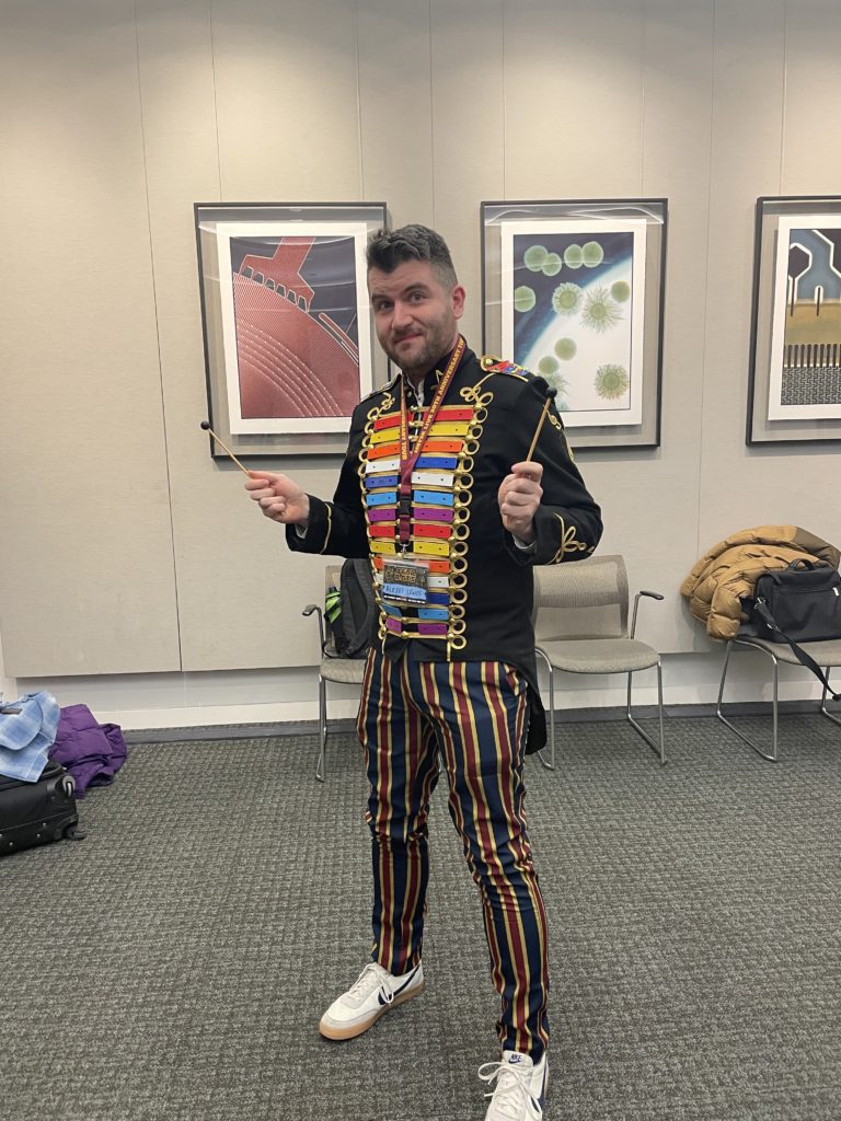 There’s also bits of Mr. B. Natural and the Dean’s peanut bar rap from Community in how the character finally shook out, but I had built Mr. Music‘s outfit a few years ago for Quarantine Halloween and wanted to use it publicly for something.