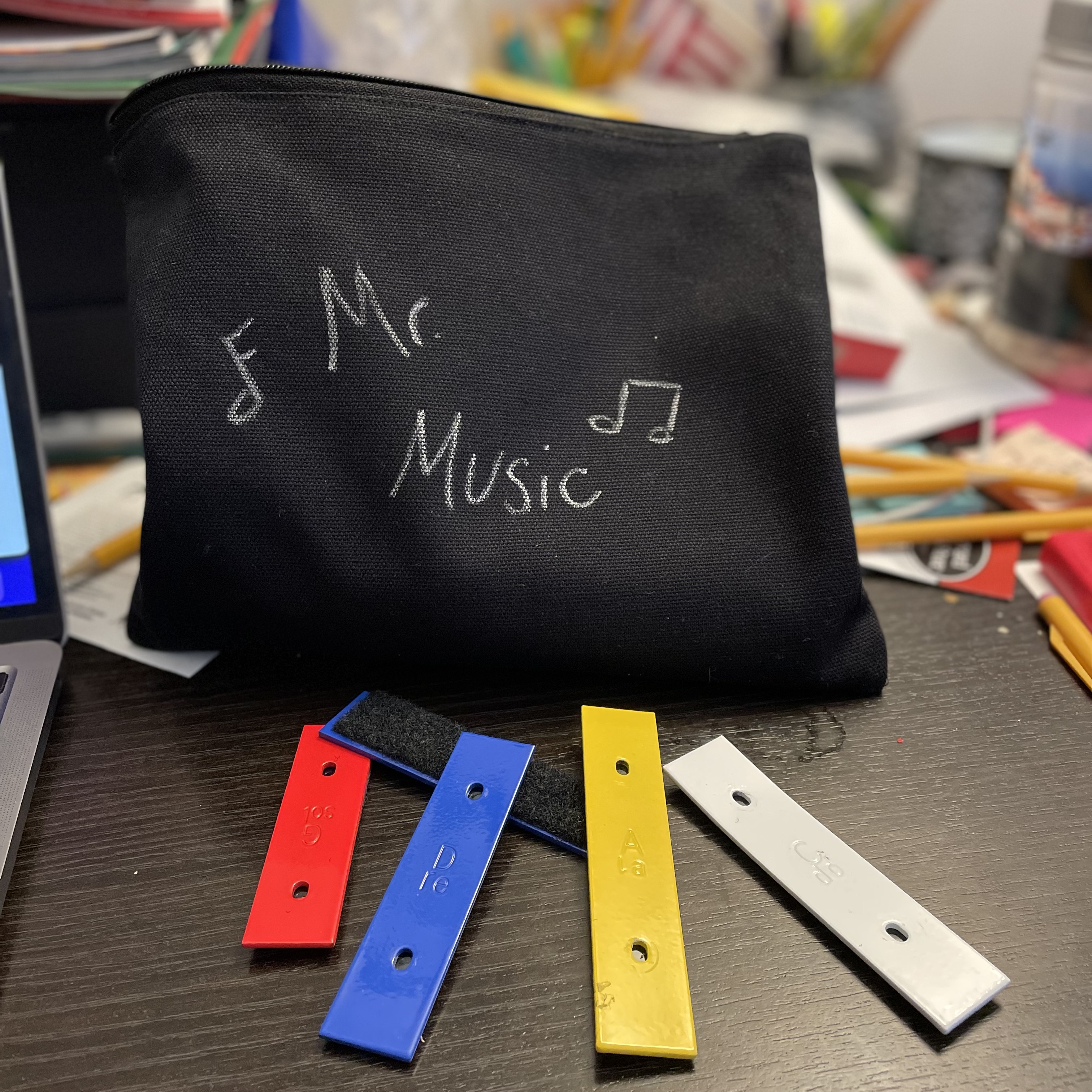 After managing to find the two super-small xylophone pieces that technically belong at the bottom of the jacket, I checked the Mr. Music jacket and found that some of the larger xylophone bars had started to fall off again. Most of them were firmly in place, but I think that while built to hold up to five pounds, the structural integrity of the sticky back of the velcro is not meant to withstand constant weight from the xylophone pieces.