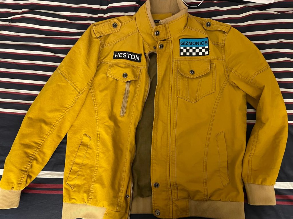 Support your friendly online Etsy iron-on patch maker – there are lots of sellers that will generate the nametag and Gizmonics patches you’re looking for, and sometimes they’ll even sell you a set of them. Since we want slightly smaller ones for this jacket (as opposed to a jumpsuit), I went with the smaller Heston and blue Gizmonics patches from NeitherSparky’s store. I thought about getting some sort of sleeve patch, but ultimately decided to just keep it clean.