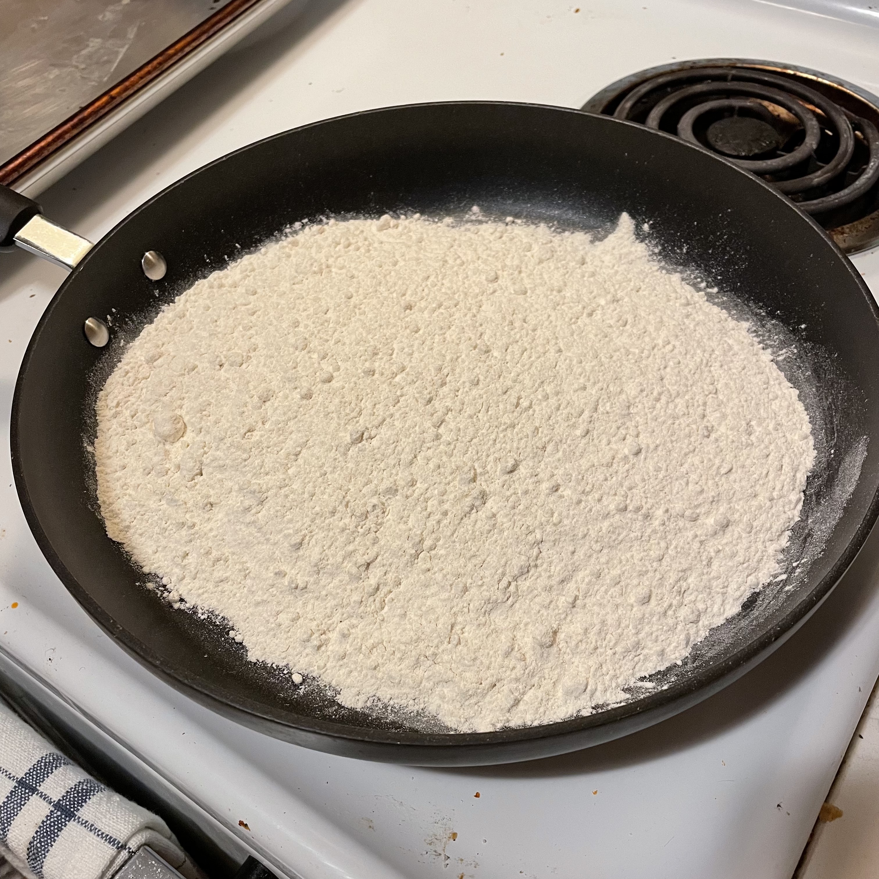 - Place your largest skillet over medium-high heat for a few minutes. Add flour and stir gently for 5-10 minutes, until the flour is lightly toasted. Stir in the cardamom and set aside to cool.