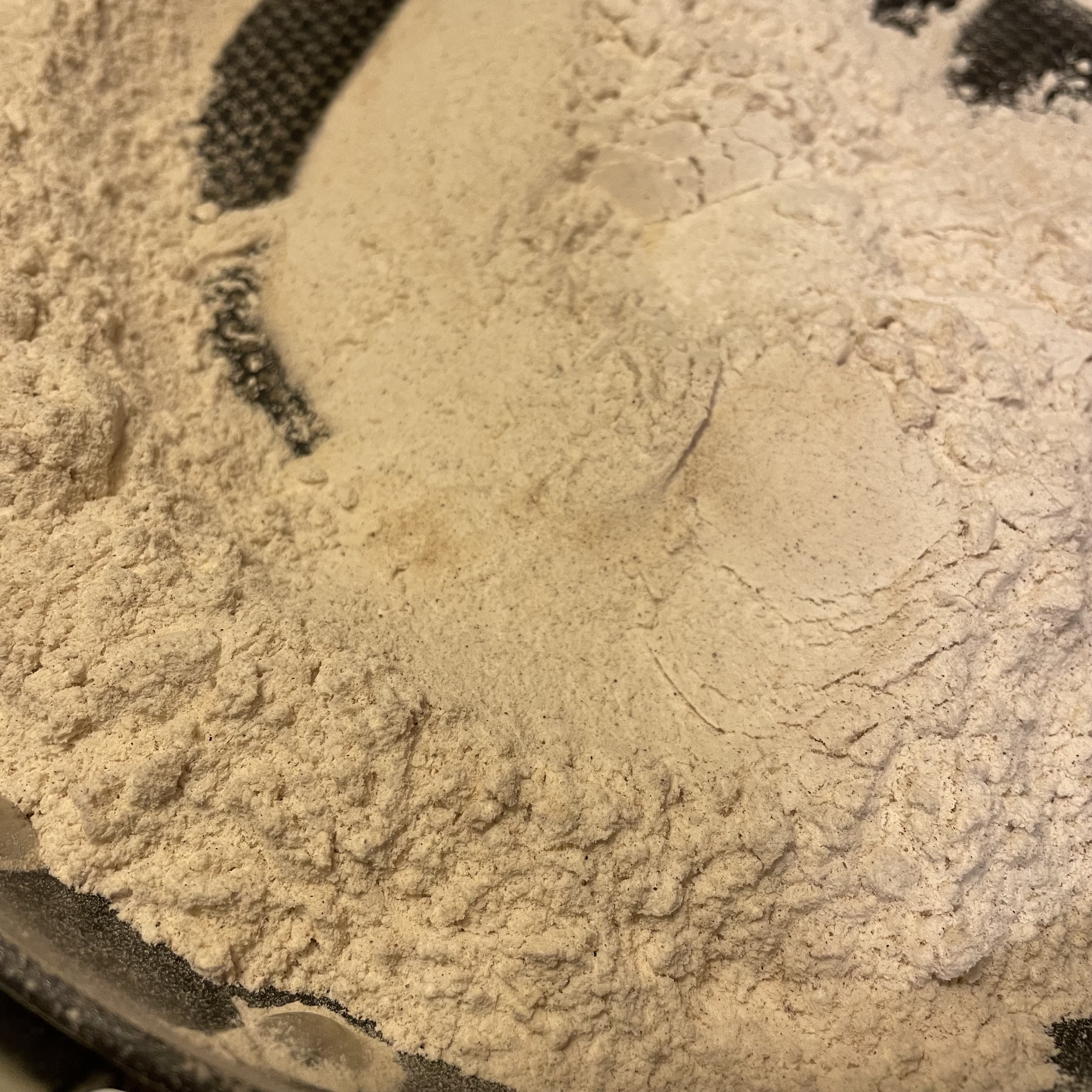 Over medium heat, you’re going to put your flour in a wide skillet and gently stir it until the flour looks like the beach from the movie - nice and toasty. Once this is done, stir in the cardamom and set aside to cool for 5-10 minutes.
