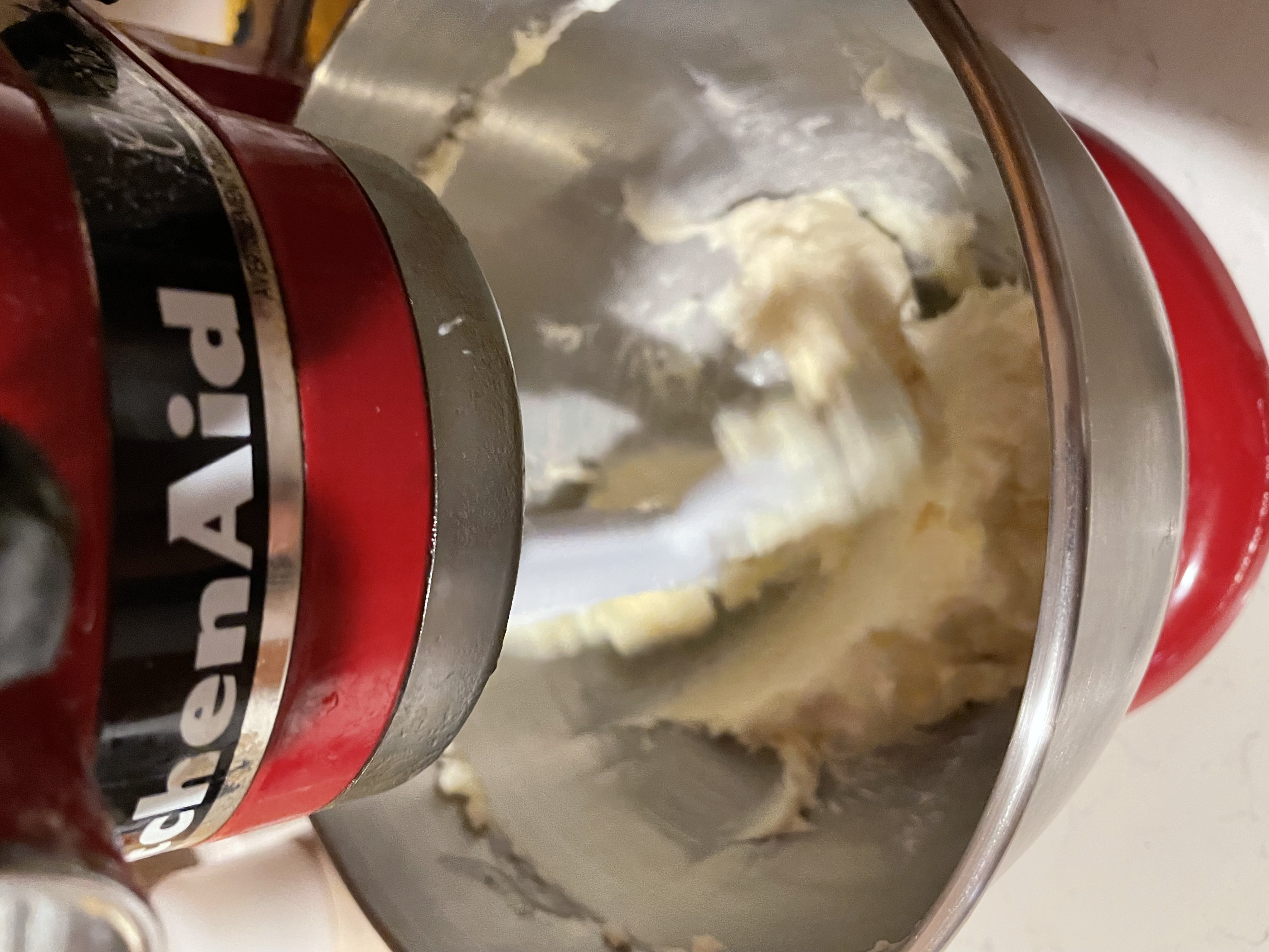 While that’s cooling, the sugar and butter get creamed together, then an egg white and vanilla is added.