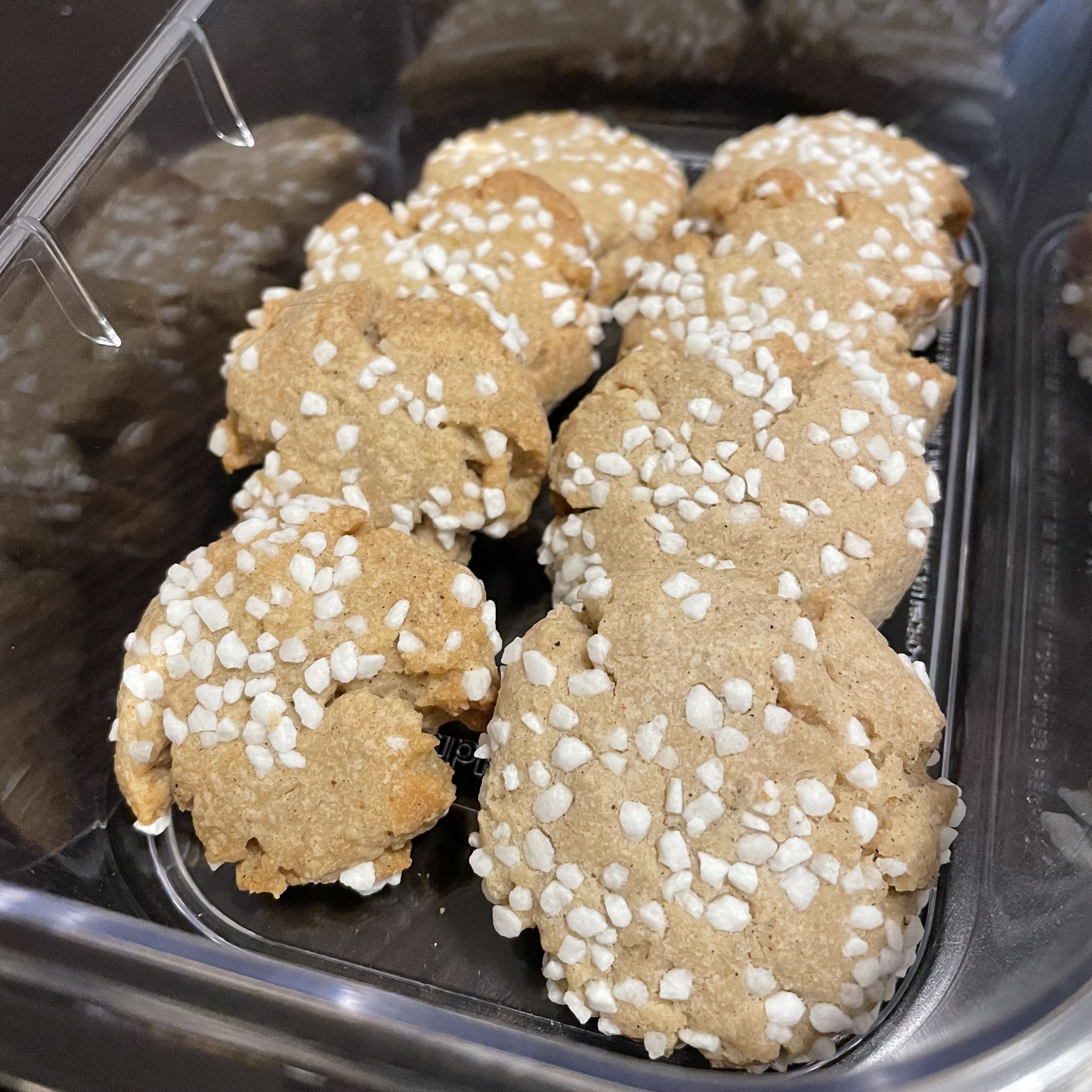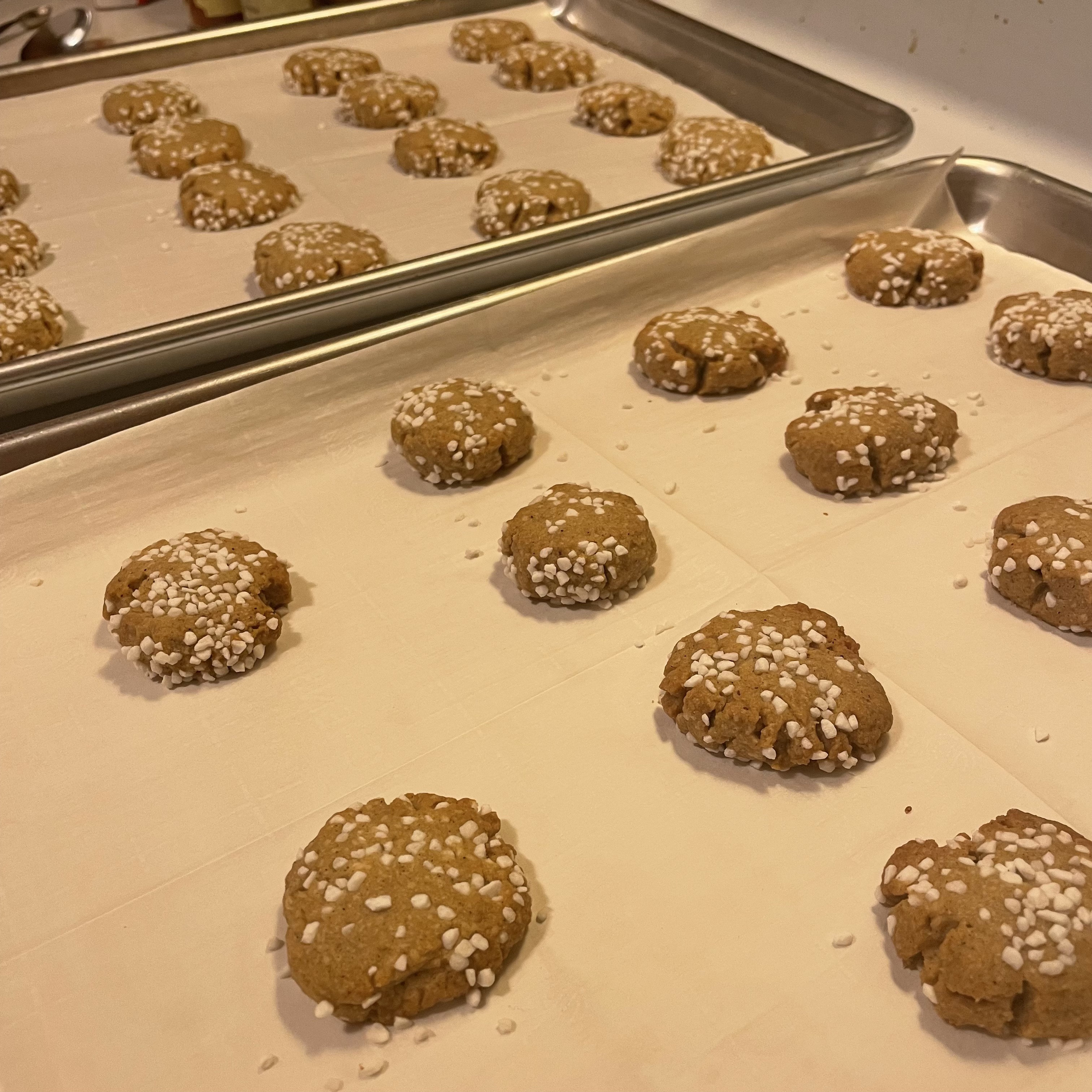 These are a riff on a sugar cookie from Dorie Greenspan that’s rolled in pearl sugar, but with the added additions of cardamom (because cardamom buns) and toasting the flour for additional depth of flavor (like you do with polvoron). Once these cool, they’ve got a nice crunch that would be perfect with a cup of tea.