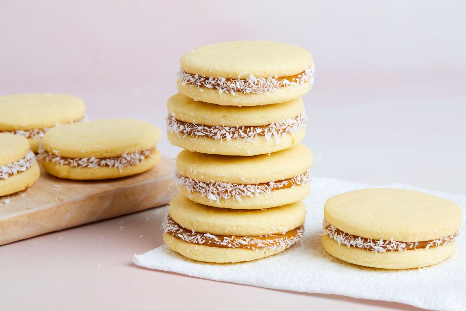 - Take pairs of roughly similar-sized cookies and spread a thin layer of cajeta on the bottom of one. Place the other cookie on top to make a sandwich. Repeat with remaining cookies.
