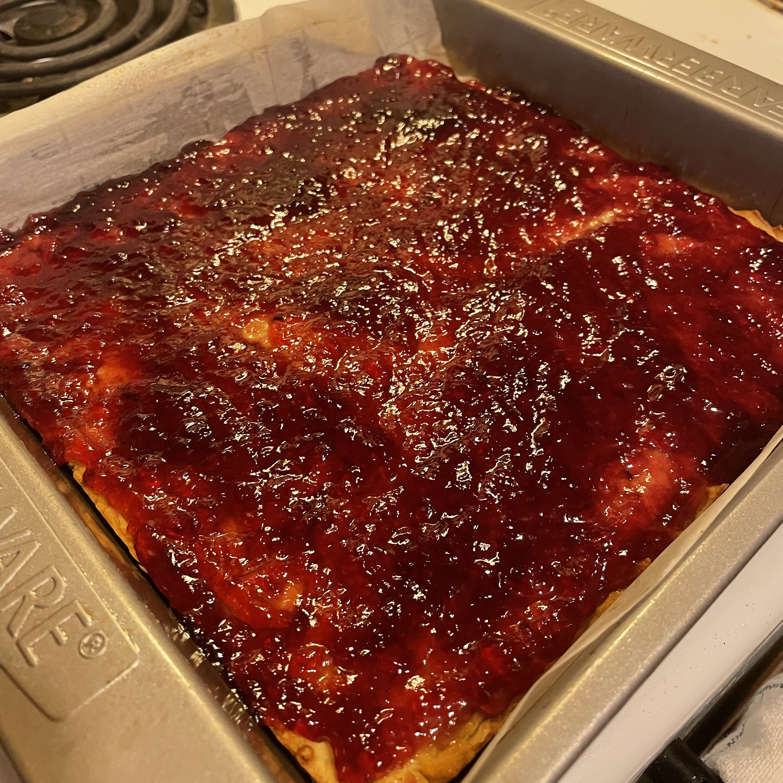 - Bake until the strusel is a deep golden brown and the jam is slightly bubbling up the sides, 20-25 minutes. Let cool for 3 hours.