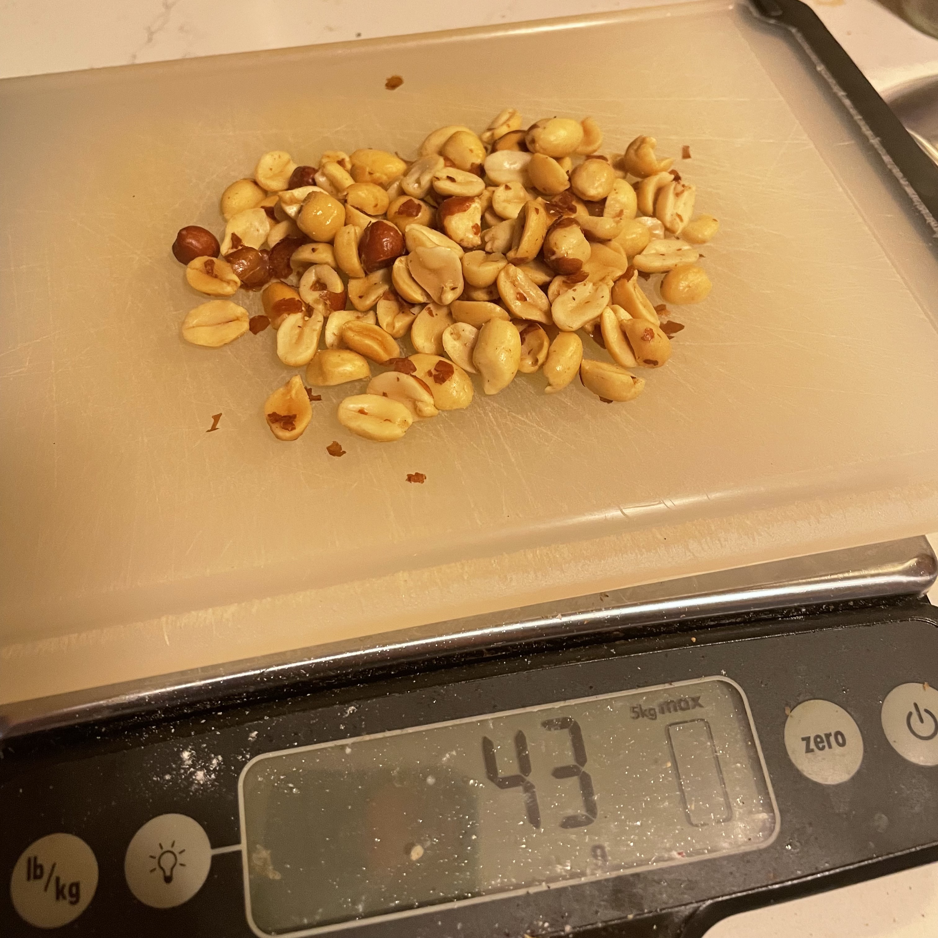 - ⅓ cup (43 grams) roasted salted peanuts, coarsely chopped