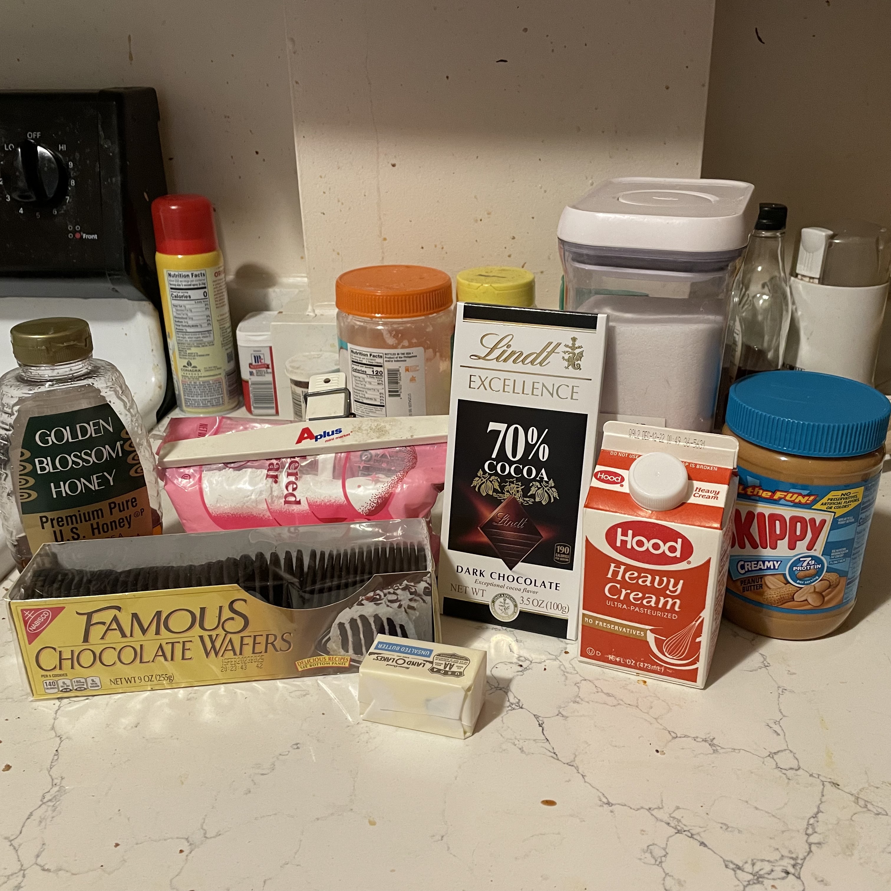 - 1 cup creamy peanut butter (NOT the all-natural kind)