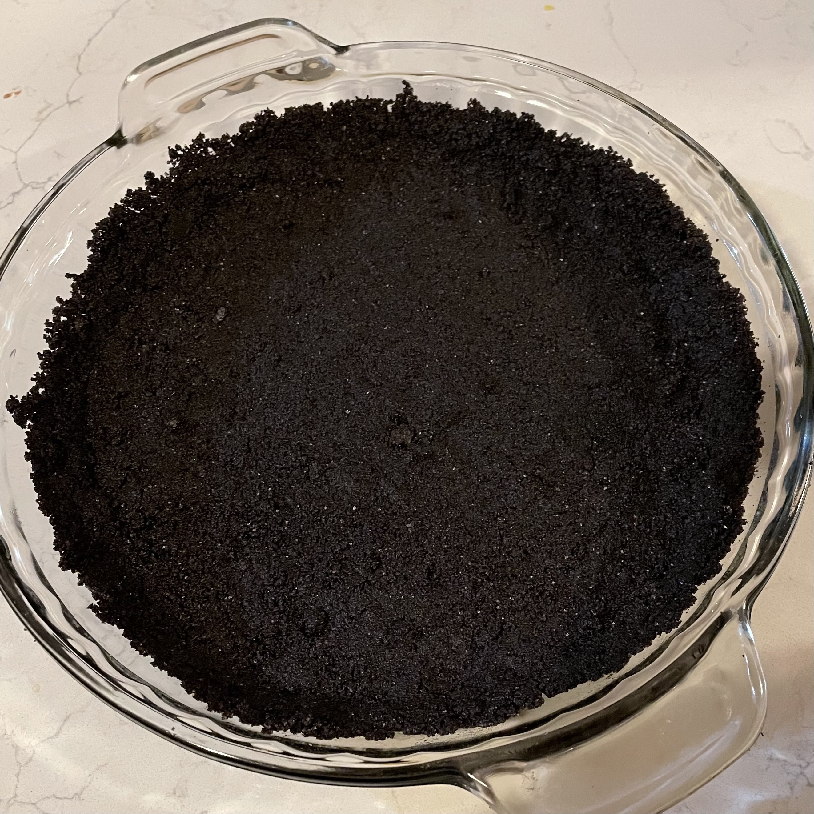 - Blend cookie crumbs, melted butter, and 2 tablespoons sugar in processor until moist clumps form. Press crumb mixture over bottom and up sides of prepared pie dish. Bake crust until lightly browned, about 15 minutes.
